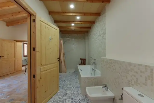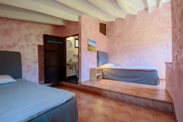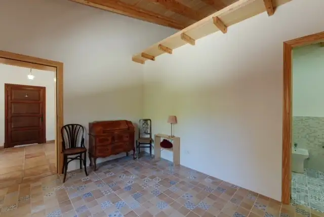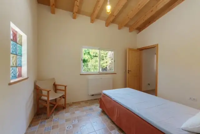 La segunda planta cuenta con un dormitorio doble con baño pequeño con maravillosas vistas a la Serra de Tramuntana, , cabe destacar las preciosas y originales vigas del techo en la planta superior