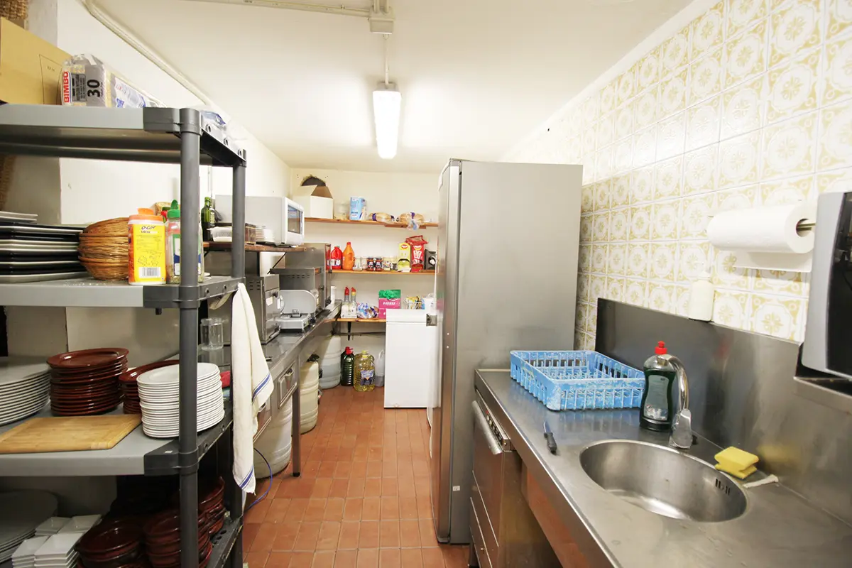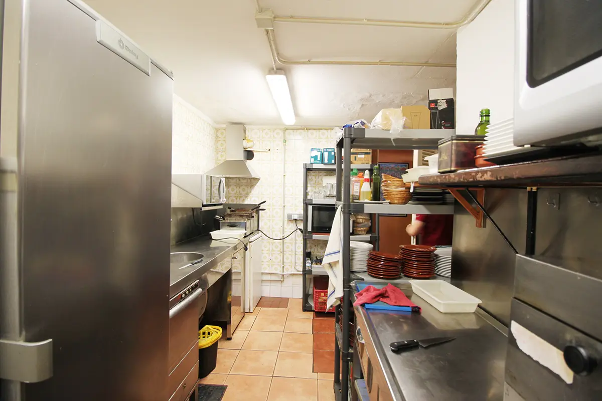 El restaurante dispone de 165 m2 de local con cocina y almacén, ambos se pueden unificar y construir una cocina más amplia. Se pueden tirar todas las paredes excepto las columnas y la pared maestra.